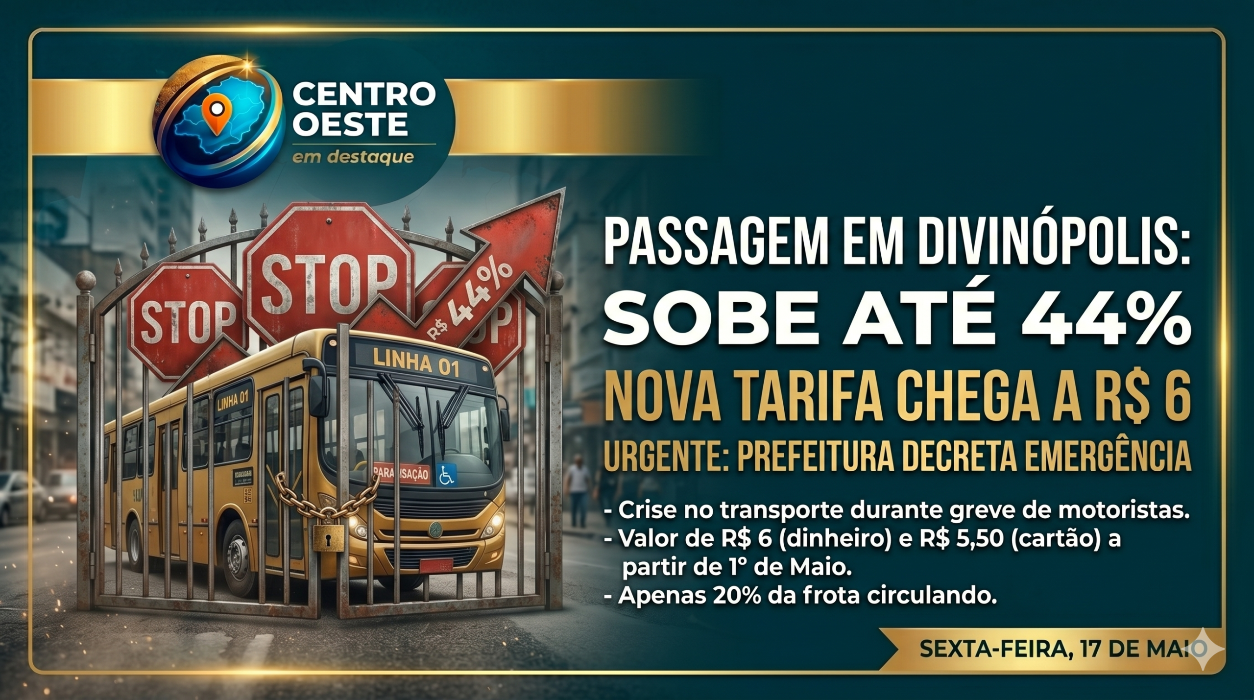 Reajuste ocorre após Prefeitura decretar emergência no transporte público, afetado pela paralisação de motoristas A alta na passagem de ônibus em Divinópolis foi confirmada pela Prefeitura nesta sexta-feira (17), em meio à greve dos motoristas que comprometeu o transporte público da cidade. O valor da tarifa passa de R$ 4,15 para R$ 6 no pagamento […]